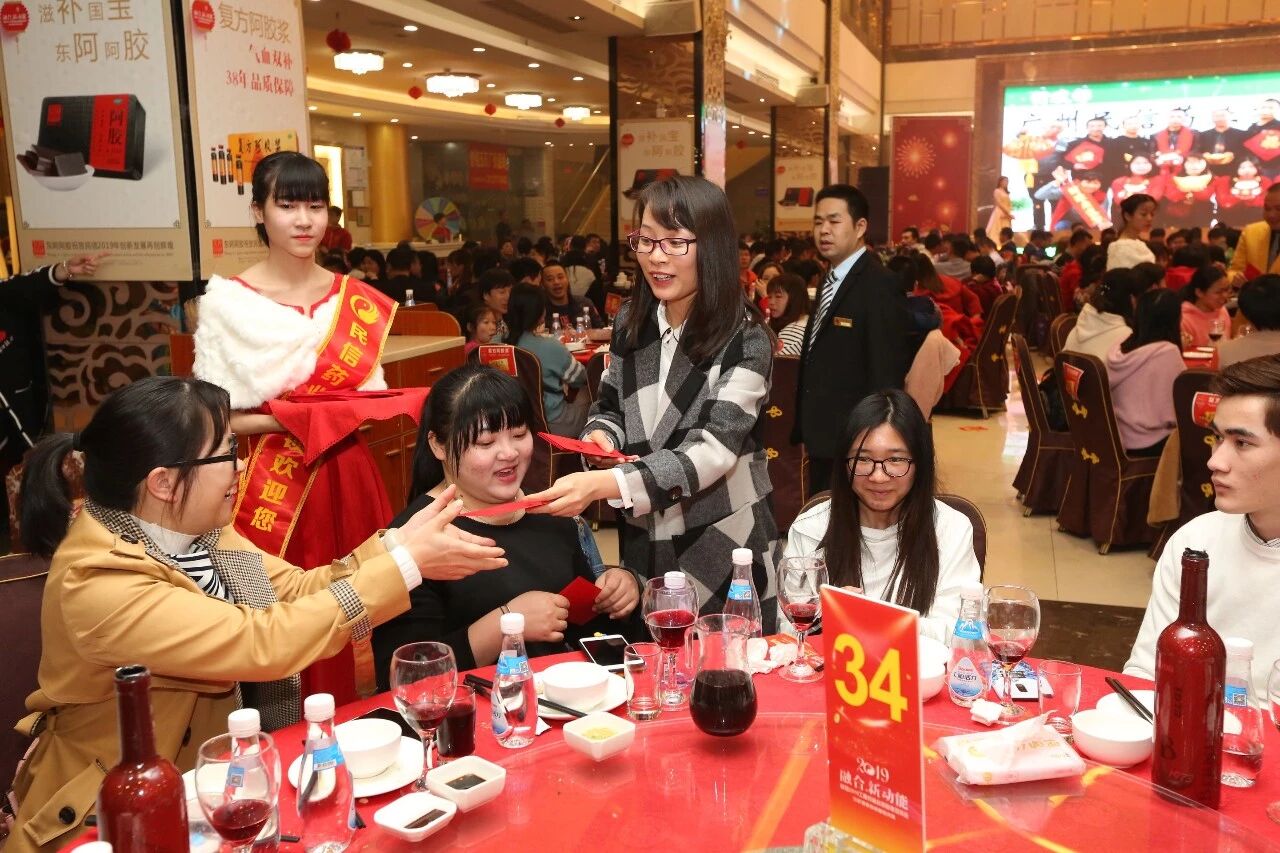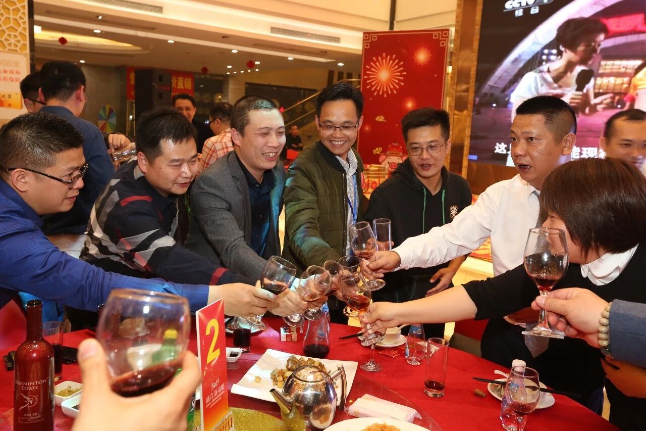 歌响酒起,领导们给大伙儿祝酒,祝民信兴旺发达,财源广进,大伙儿心想事成,步步高升,2019年盘起来