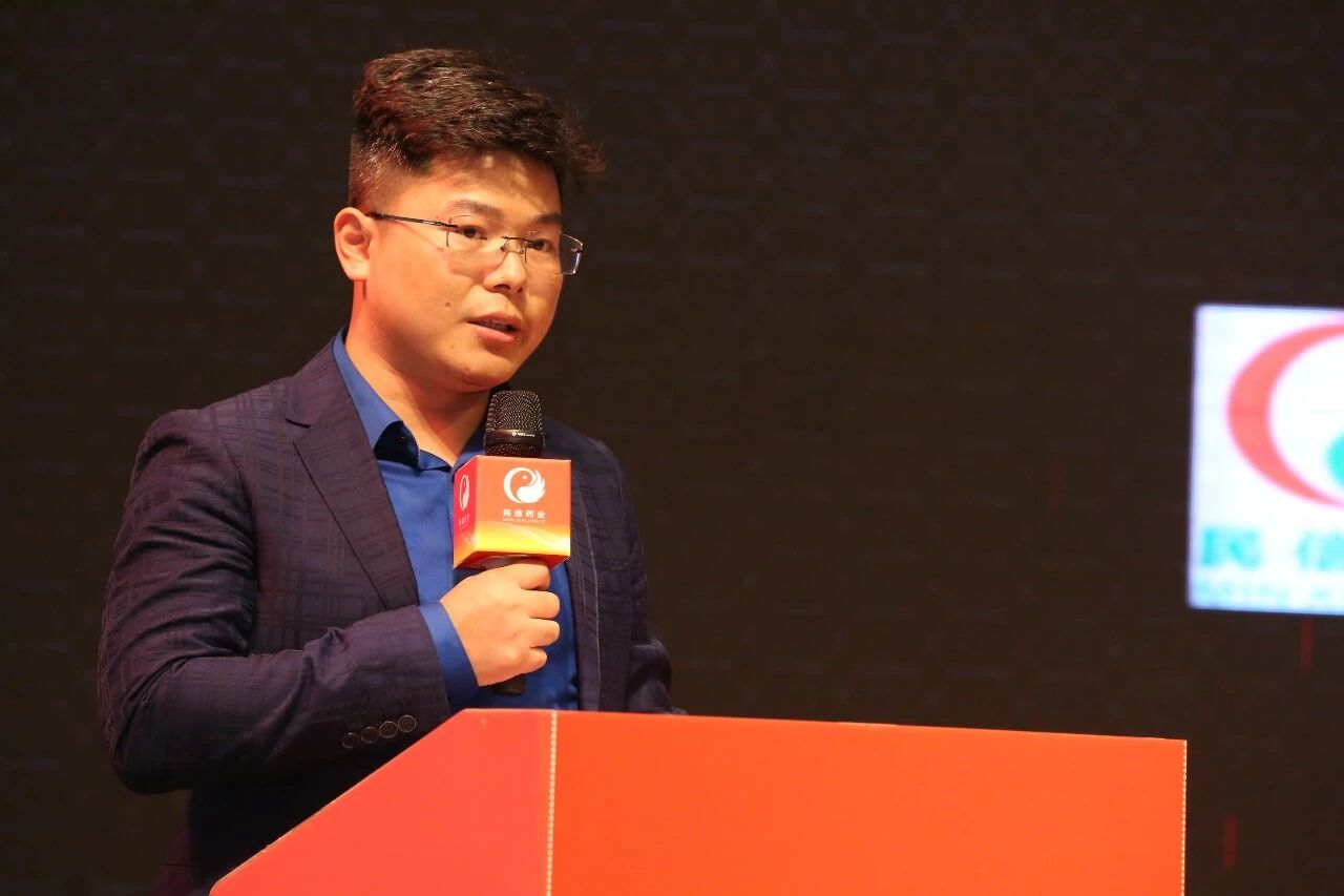 ▲民信药业连锁副总经理陈金智做年会致辞