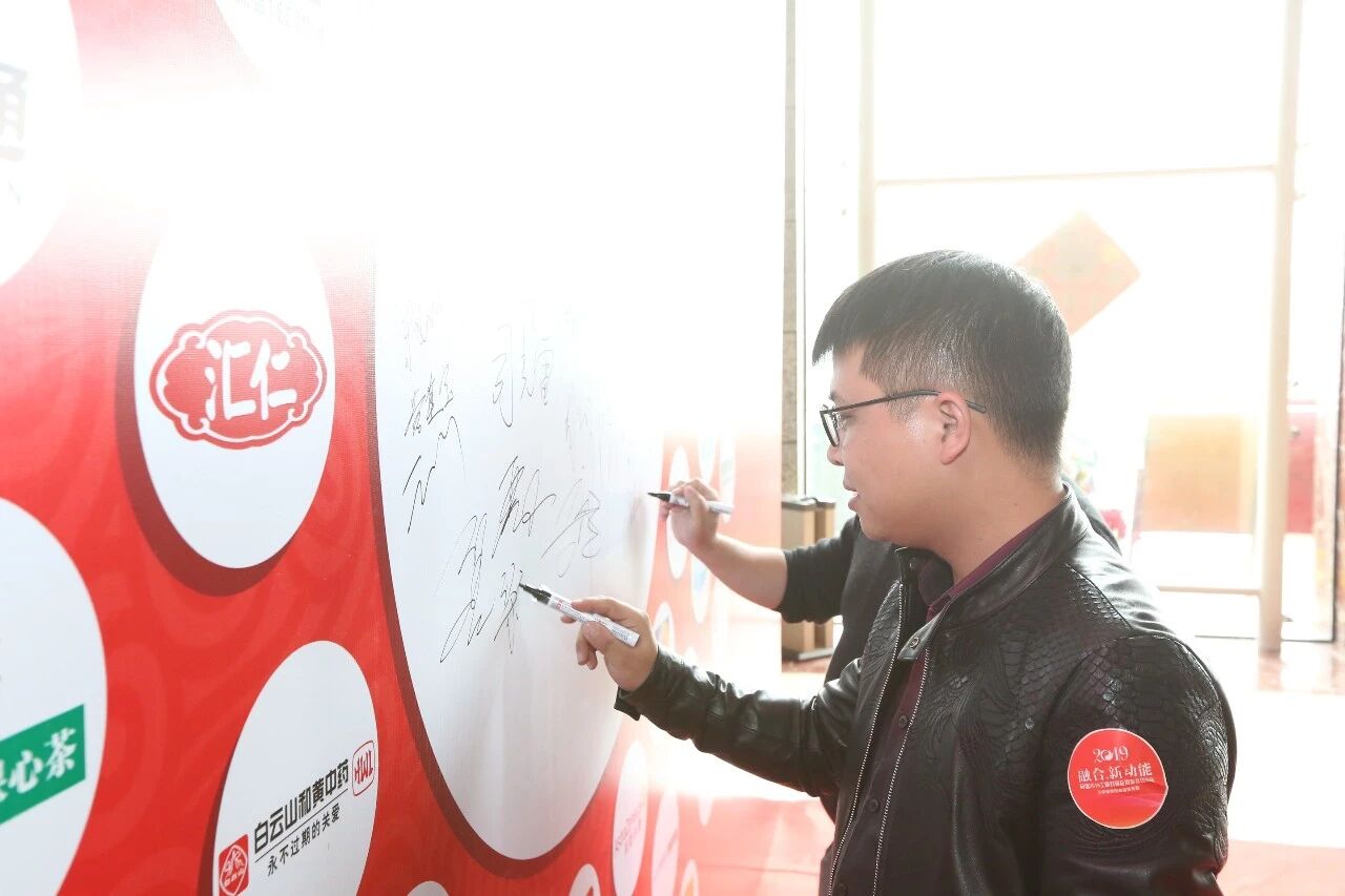 民信的家人们和工商伙伴陆续到达现场,在签到墙留下2019年的印迹,并和我们可爱的网红熊拍照留念。